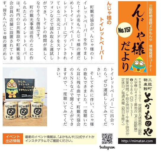 三股町観光協会が「んじゃ様のトイレットペーパー」を作りました🚻